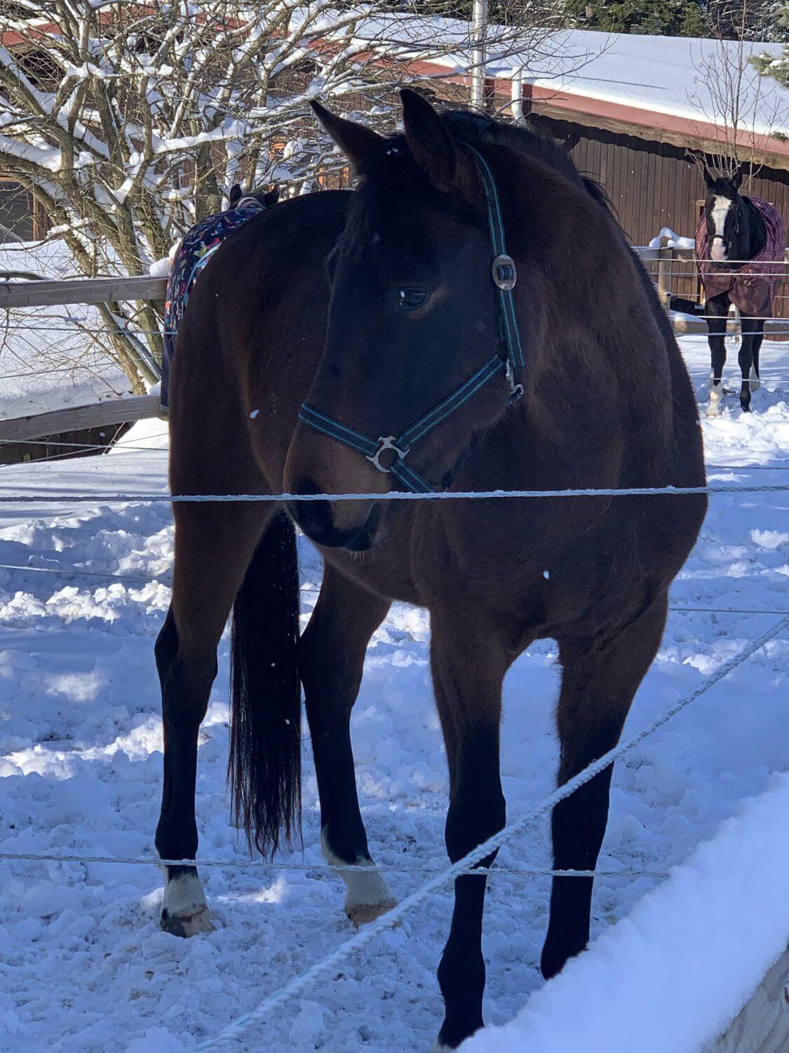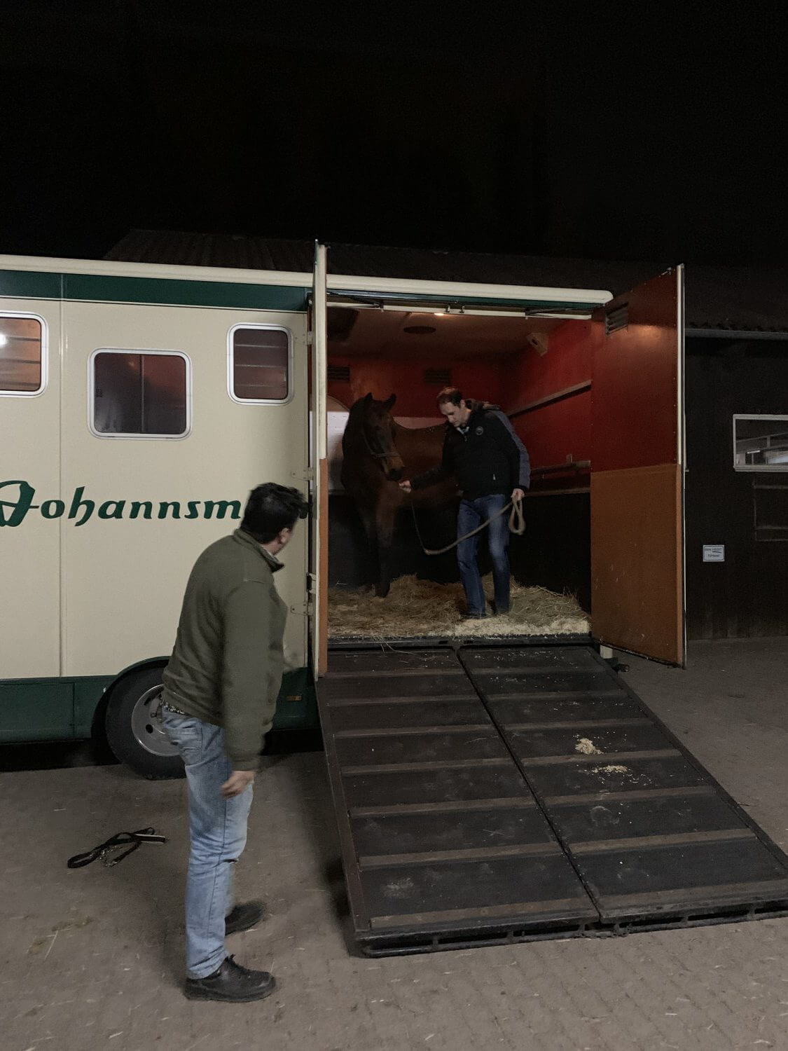 Ende Januar ist endlich unser Nachwuchspferd Quintero B von Quaterback x Paradiesvogel bei uns im Stall angekommen. Er wird nun langsam und schonend auf die Arbeit unter dem Sattel vorbereitet. Dank der guten Aufzucht des Zuchthof Bahnemanns in Pausin ist er im Umgang gut erzogen und sehr gelassen. Wir danken außerdem der Firma Johannsmann für den sicheren Transport.